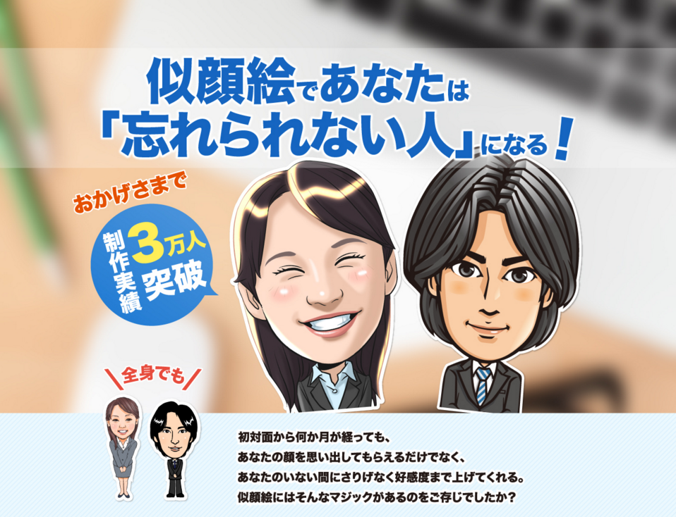 ビジネスチャンスを広げるぞという人は「制作実績3万人の似顔絵データ.com」から注文!